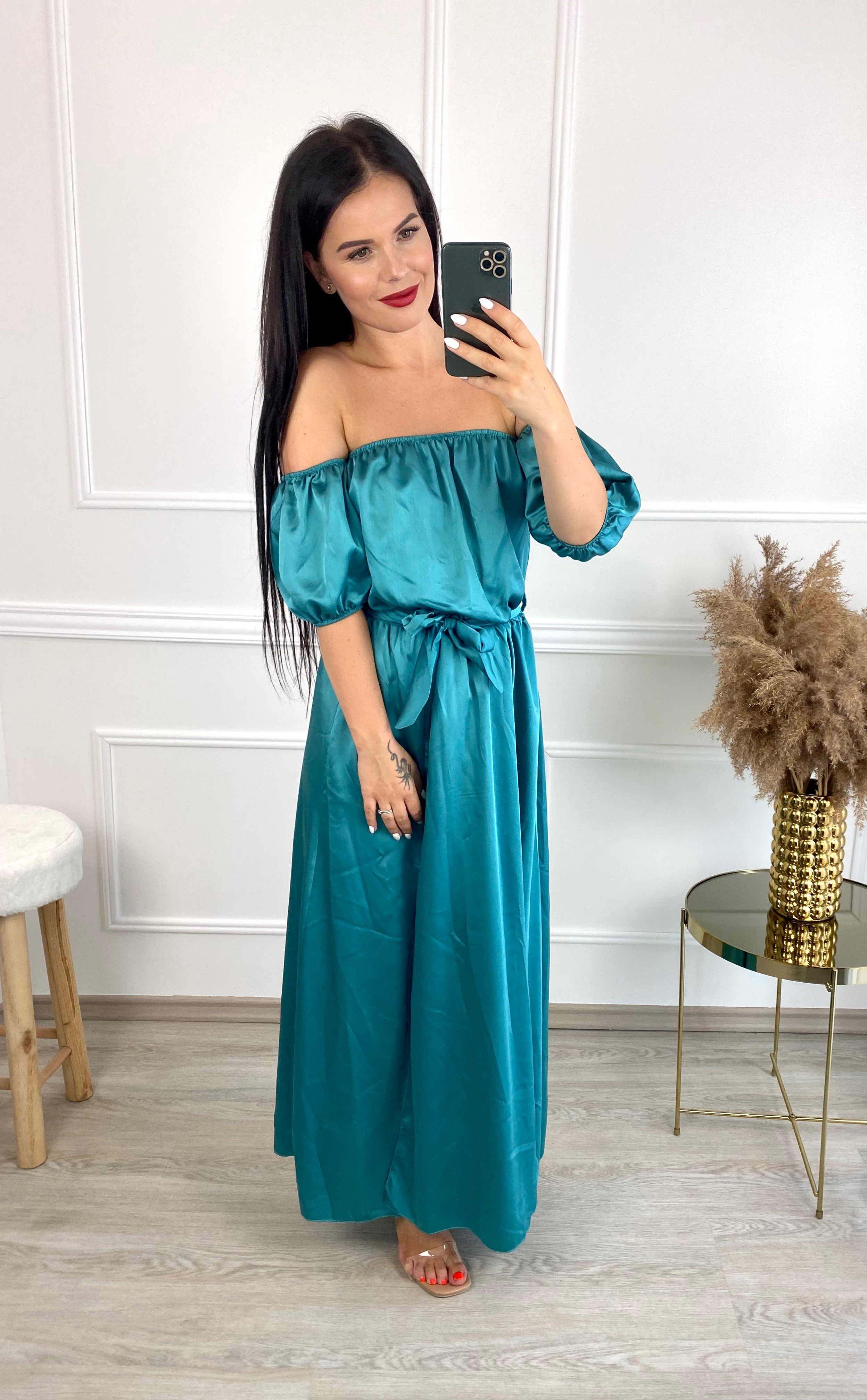 Dlouhé saténové šaty Dikins/petrolejové