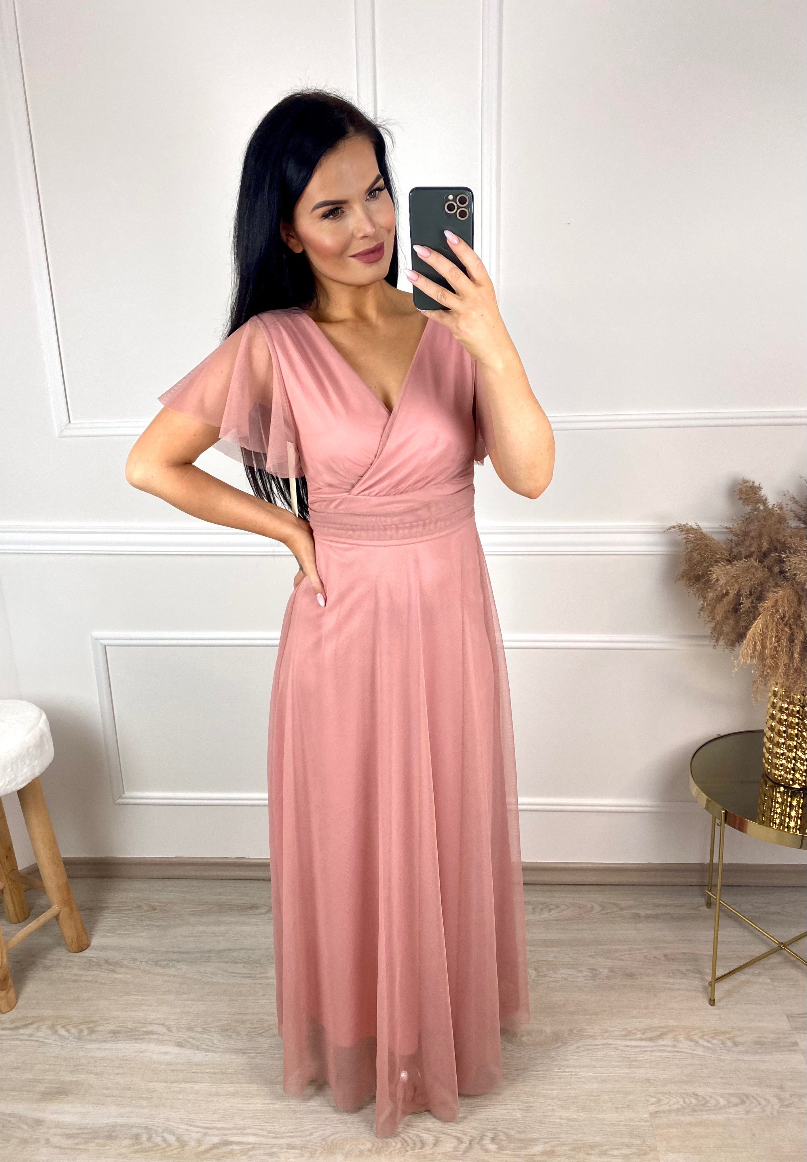 Dlouhé šaty Sins s rukávy/starorůžové
