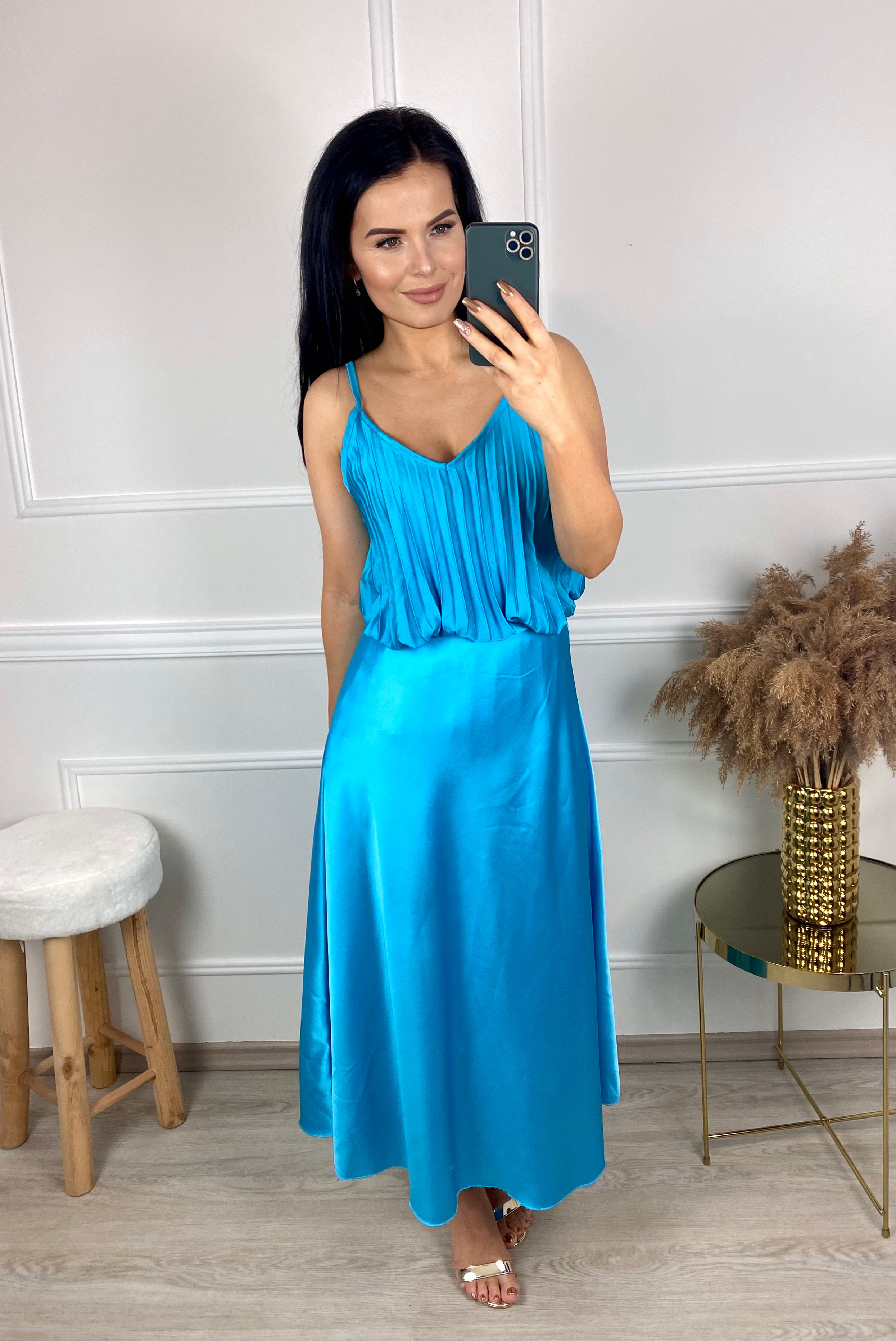 Saténový komplet áčkové sukně a plísovaného topu