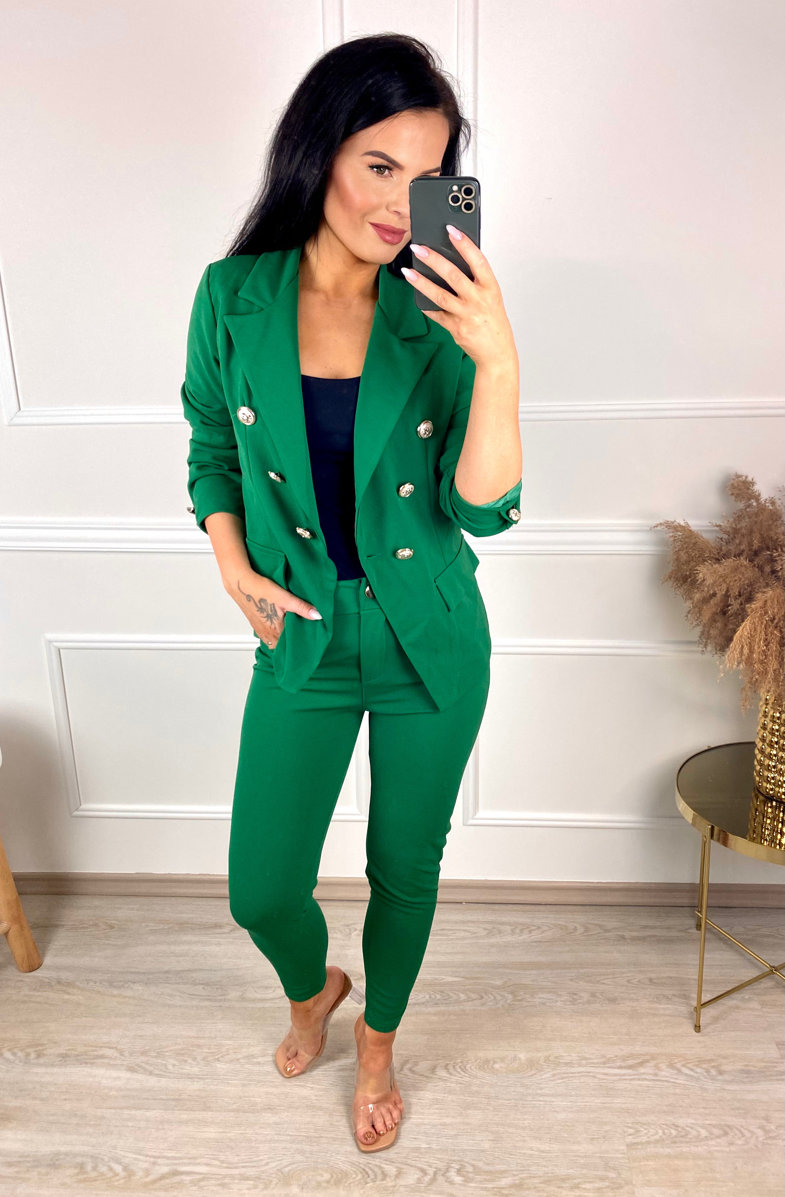 Nádherný elegantní komplet obtáhlých kalhot a saka se zlatými knoflíčky