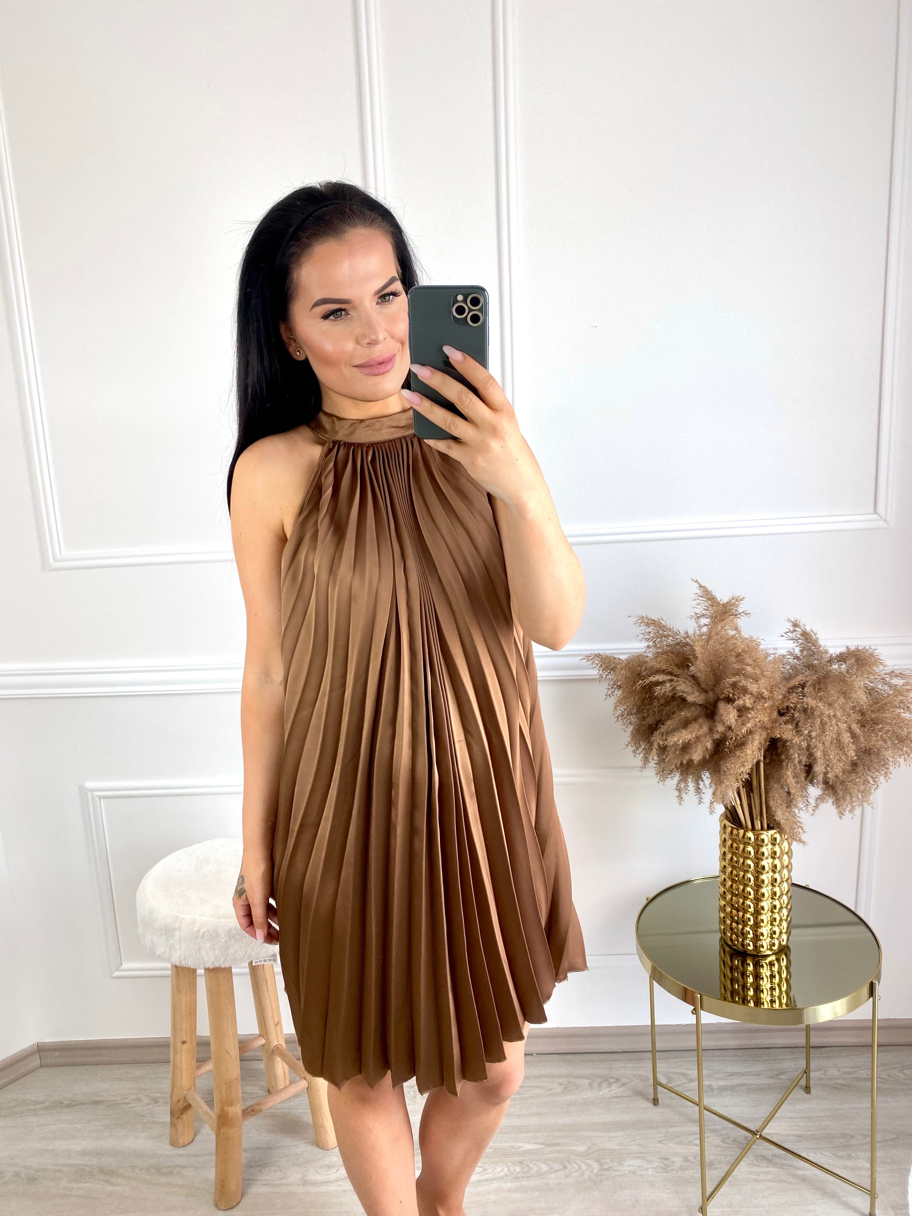 Letní saténové šaty Roses/hnědéskladem660 Kč/ ks