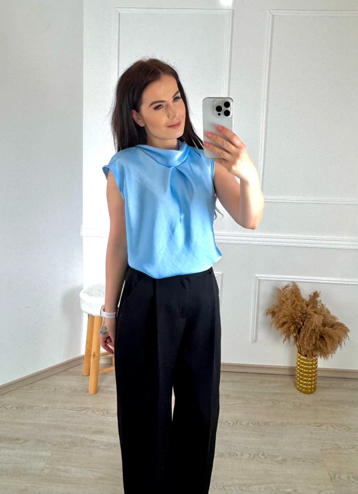 Saténová halenka bez rukávu/ modré