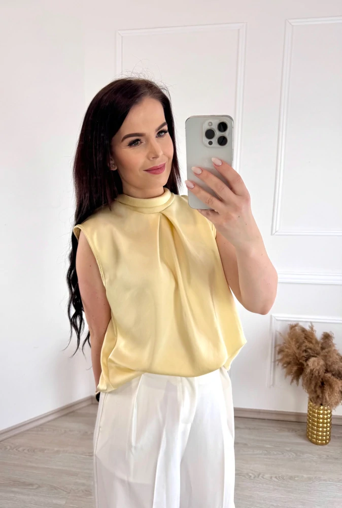 Saténová halenka bez rukávu/ žlutá