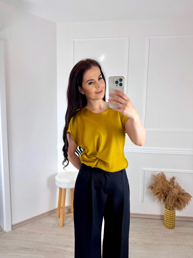 Saténová halenka s řasením/ hořčicováskladem490 Kč/ ks