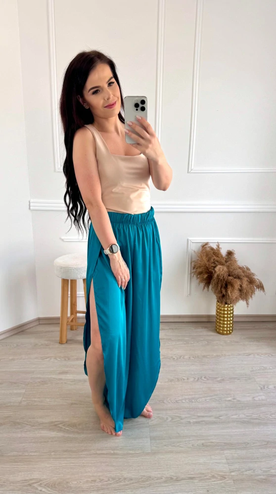 Saténové kalhhoty s rozparkem Simi/ petrolejováskladem499 Kč/ ks