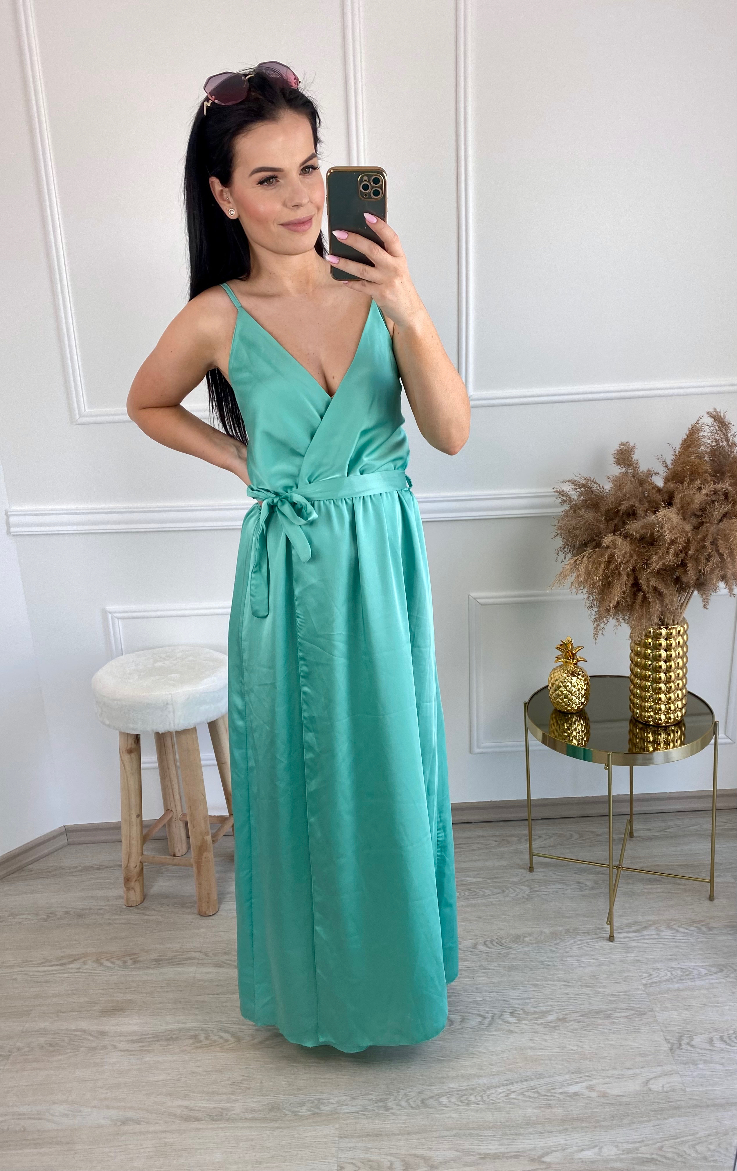 Saténové šaty Grandioza/mentolové