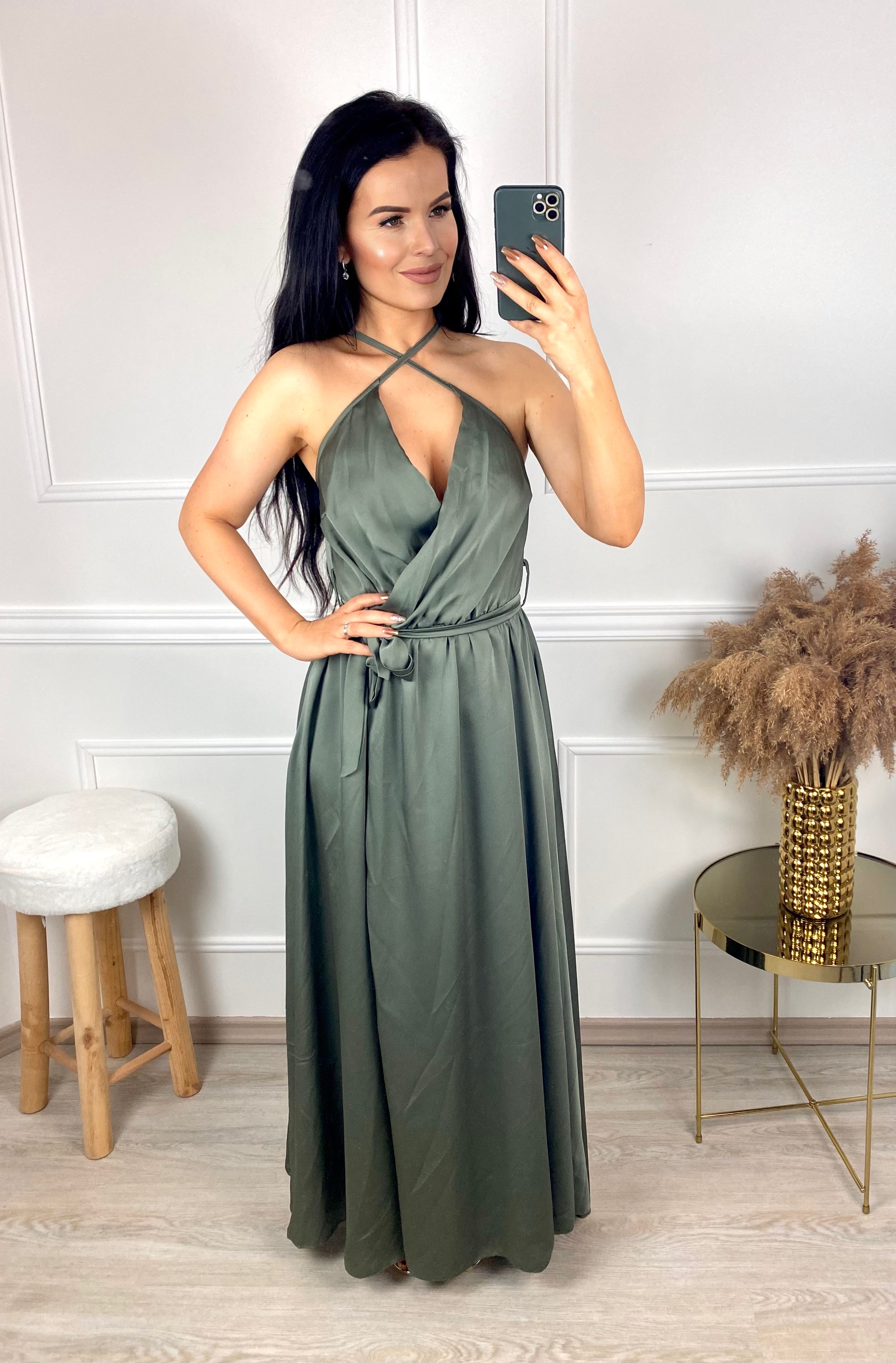 Saténové šaty Grandioza/khaki