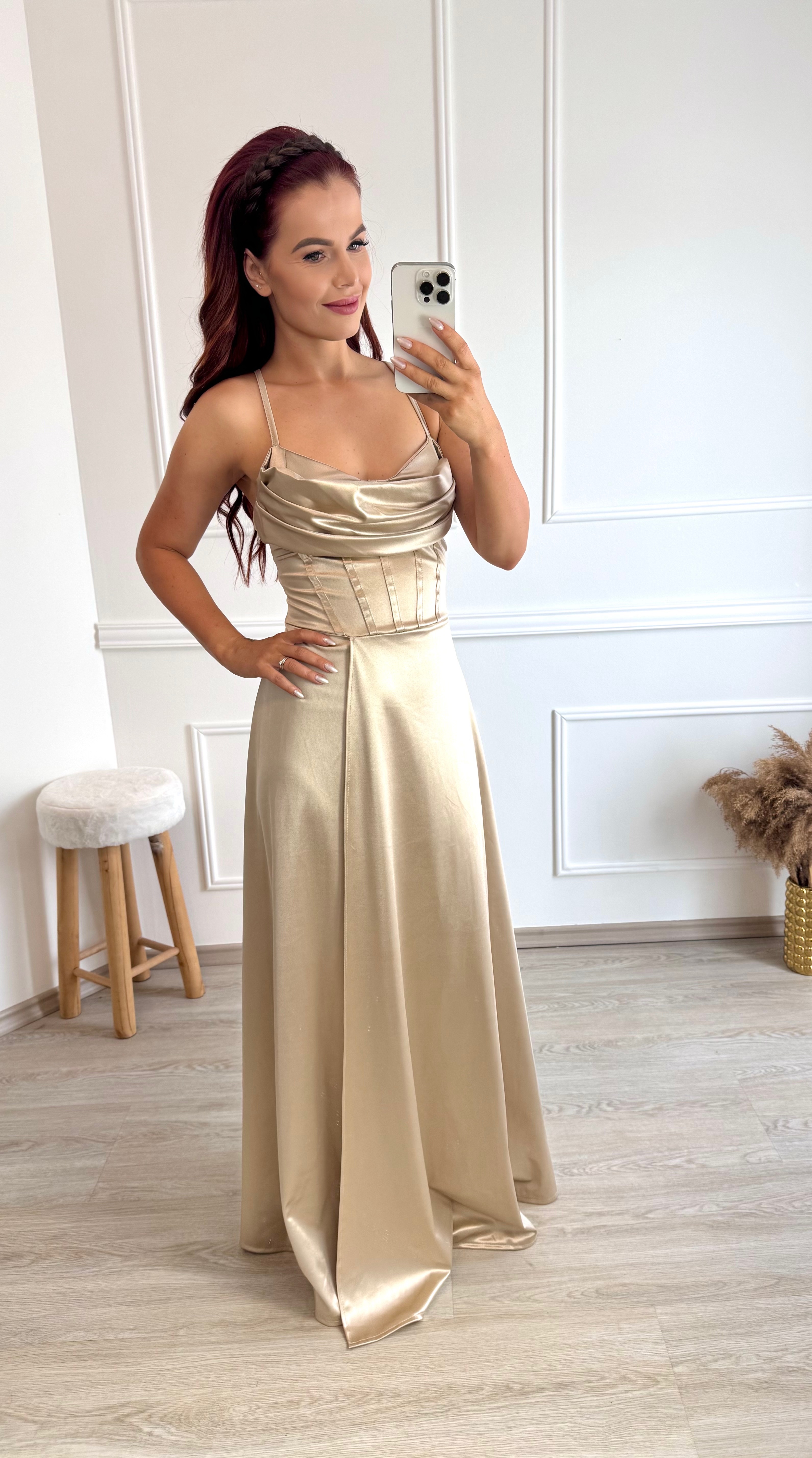 Saténové šaty s řasením Cindy / zlatéskladem1 500 Kč/ ks