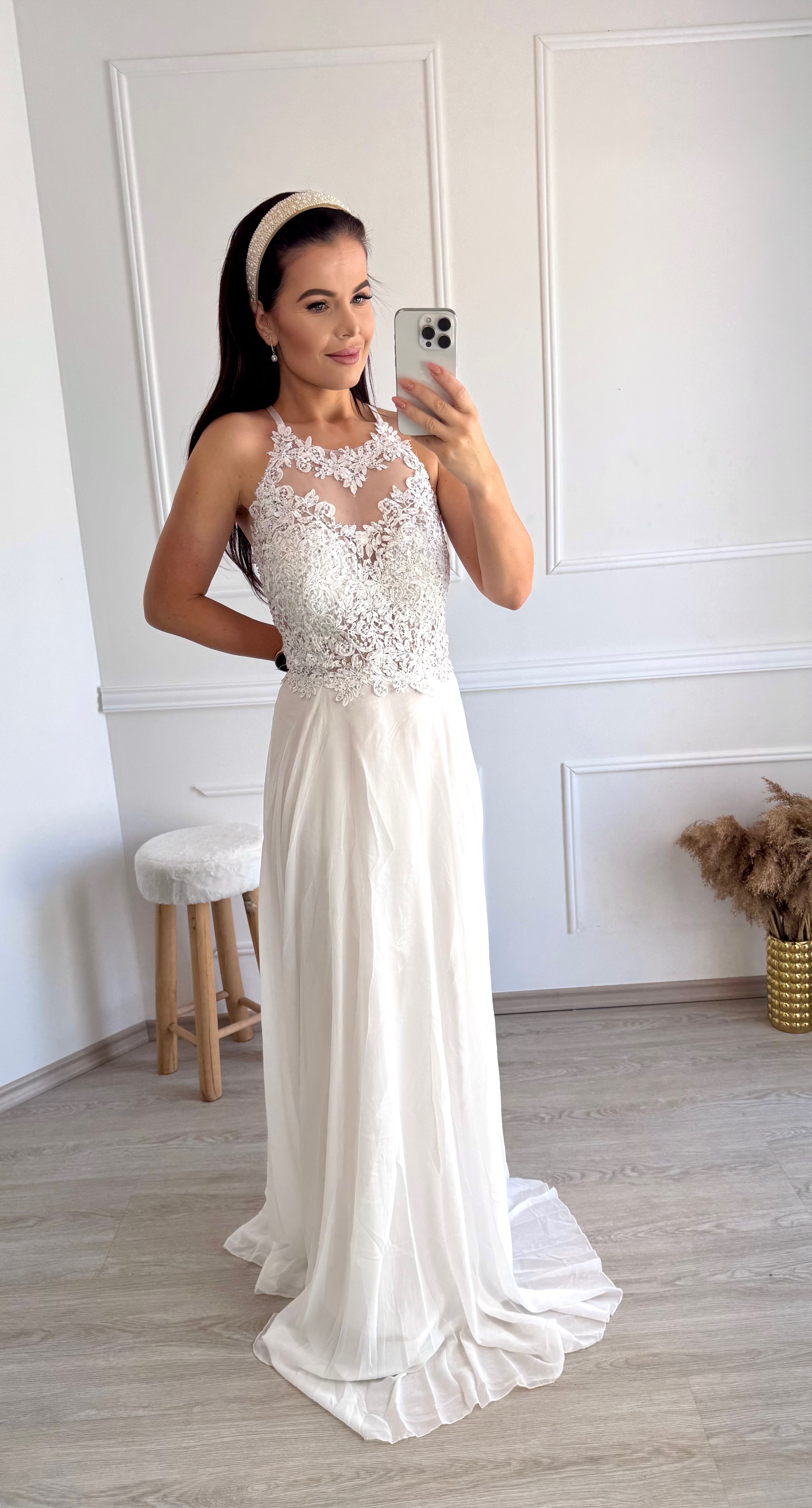 Nádherné lehké šifonové šaty, vhodné jako svatební, popůlnoční, na bílou prodlouženou