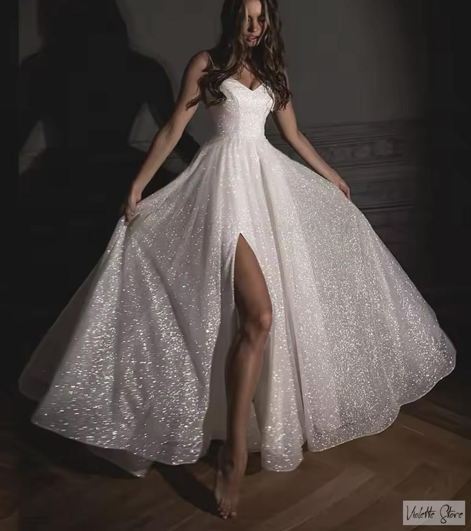 Nádherně třpytivé svatební šaty