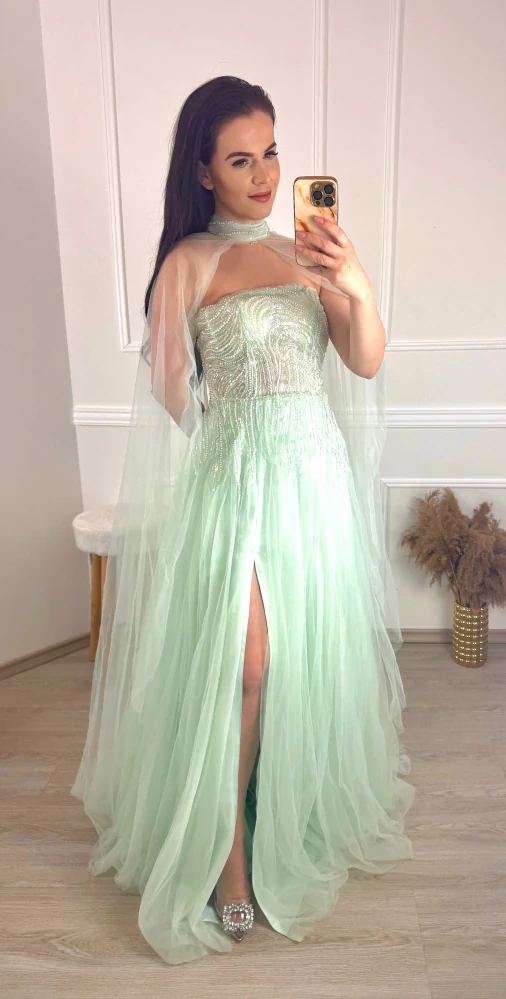 Tylové plesové maturitní šaty s rozparkem